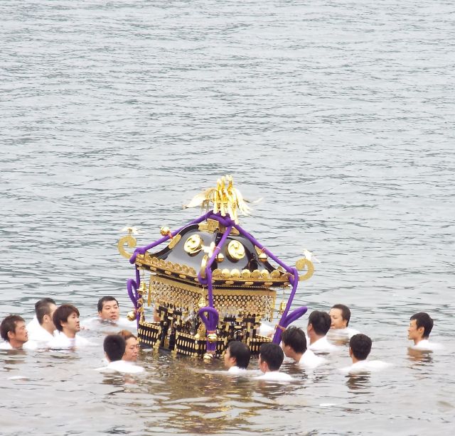 秋村雨神輿かつぎて海の中