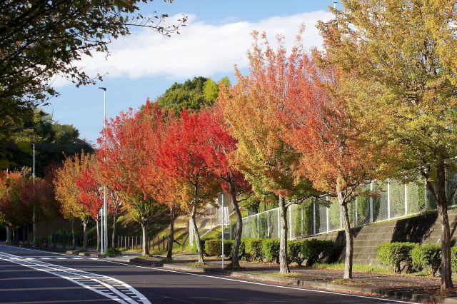 街路樹の肩にひらりともみじの手