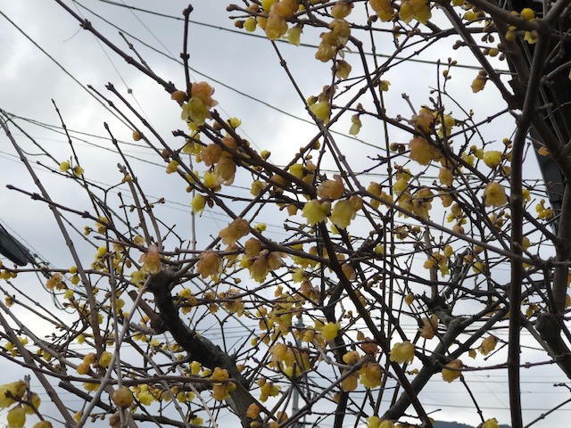 2020年01月16日photo俳句勝爺蝋梅蝋梅や見向きもされずそっと咲き1601蝋梅の咲くころと思い、いつもの道を辿る。昨年枝を切られたようで、今年は一回り小さくなって、どこか寂しい。老婆の身長が縮まったように。 Tweet
