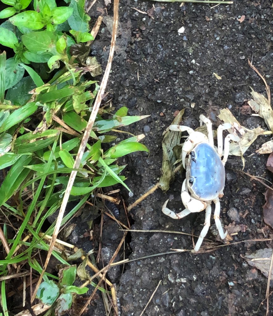 季節が秋に変わって以来、雨続きの昨今、小道にサワガニが盛んに往来している