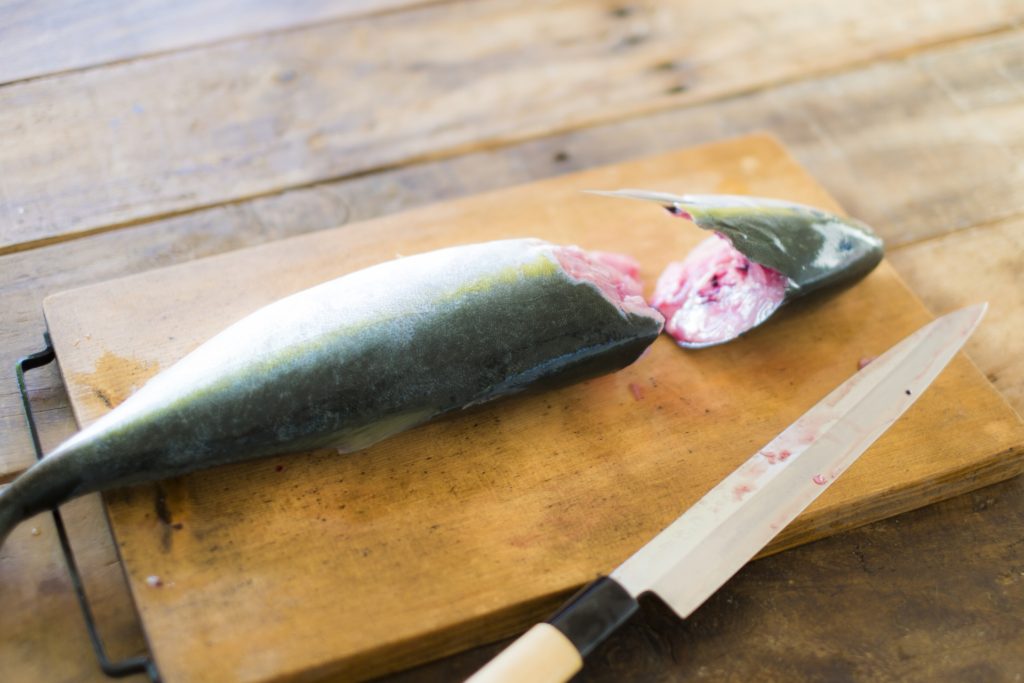 朝どりや文化包丁ハマチ切る