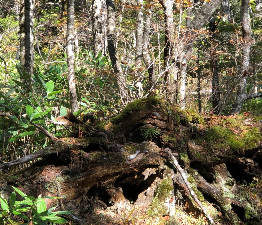2020年10月20日photo俳句上高地倒木勝爺猿倒木に猿が宿りし上高地 1709何気なく撮った写真を後で見ると、思いがけないものが写っていることがある。倒木を根の方から撮った写真が顎ヒゲを生やした片目の老猿に似てないか?そういえば、案内看板に先月、この近くでクマが出没したとの知らせが貼ってあった。クマザサも茂る上高地だからクマが済んでいてもおかしくない、否、クマの方が先住民なのかも。 Tweet