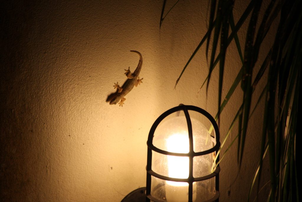 門燈の両手広げる守宮かな