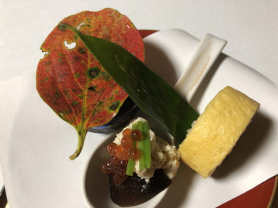 伊豆宇佐美の奥ノ坊にてMさんの誕生膳。秋草繁茂する庭を眺めながら健康長寿を願う。