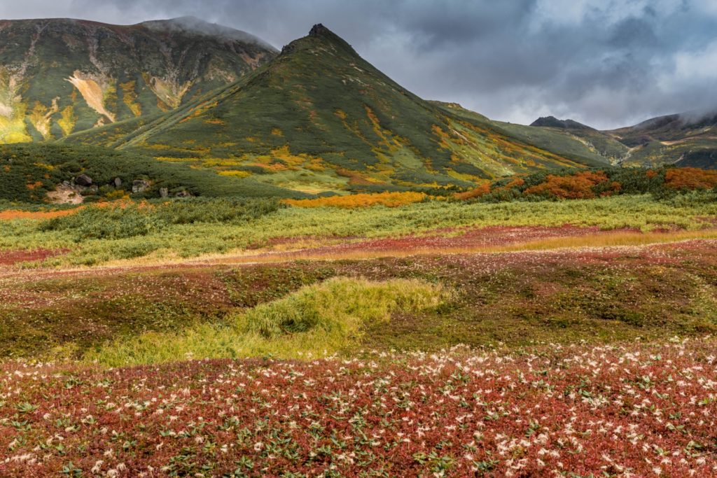 里山の夕日とコラボ草紅葉