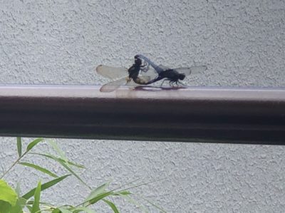 ドッキングしながら器用に飛び舞う蜻蛉。持続力もかなりのものだ。蜻蛉世界には少子化問題は無いようだ。