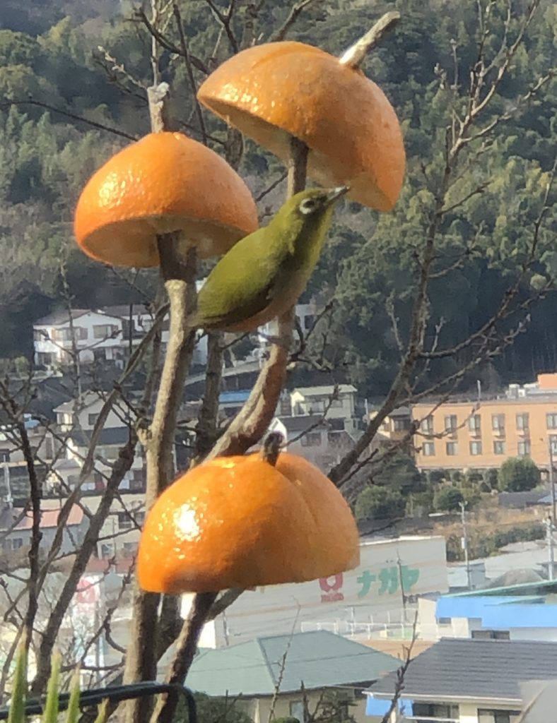 2023年02月04日photo俳句ヒヨドリ勝爺目白蜜柑餌 蜜柑餌や目白ヒヨドリ入れ替わり1818蜜柑を半分に切り、木の枝に刺す。小鳥たちが交互にやってくる。目白が最も多く、次いでヒヨドリだ。でも、今年は鳥たちの飛来が減っている。 Tweet